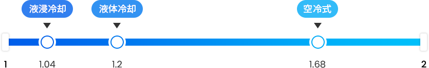 液浸冷却は1.0~1.04のレベルで、